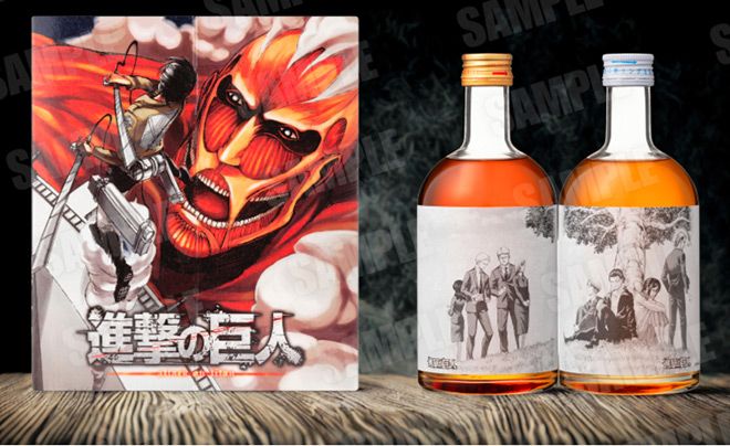 The pair of 500-milliliter bottles come in a dedicated presentation box with a Titan painting and sell for tax-inclusive 5,500 yen ($35).