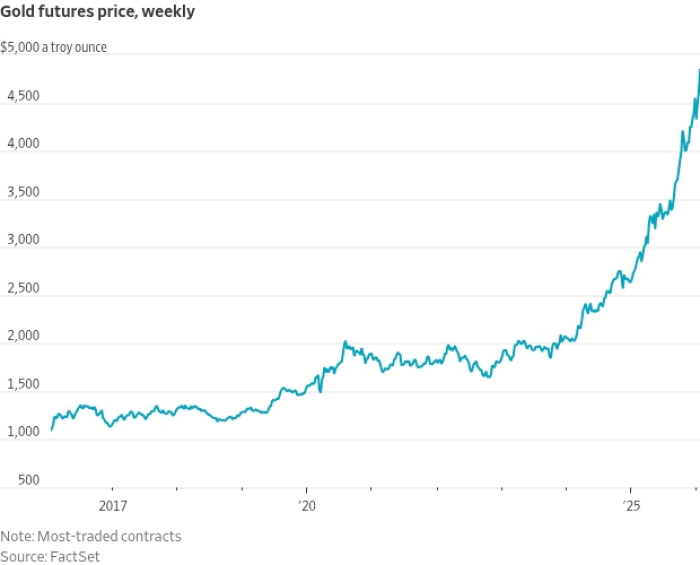 Gold climbed above US$5,100 an ounce before retreating a bit as markets react to rising global uncertainty set off by US President Donald Trump’s policies and statements, including threats to impose deep tariffs on China.
