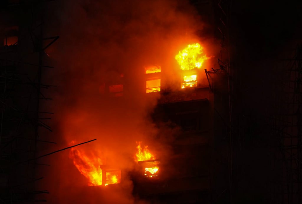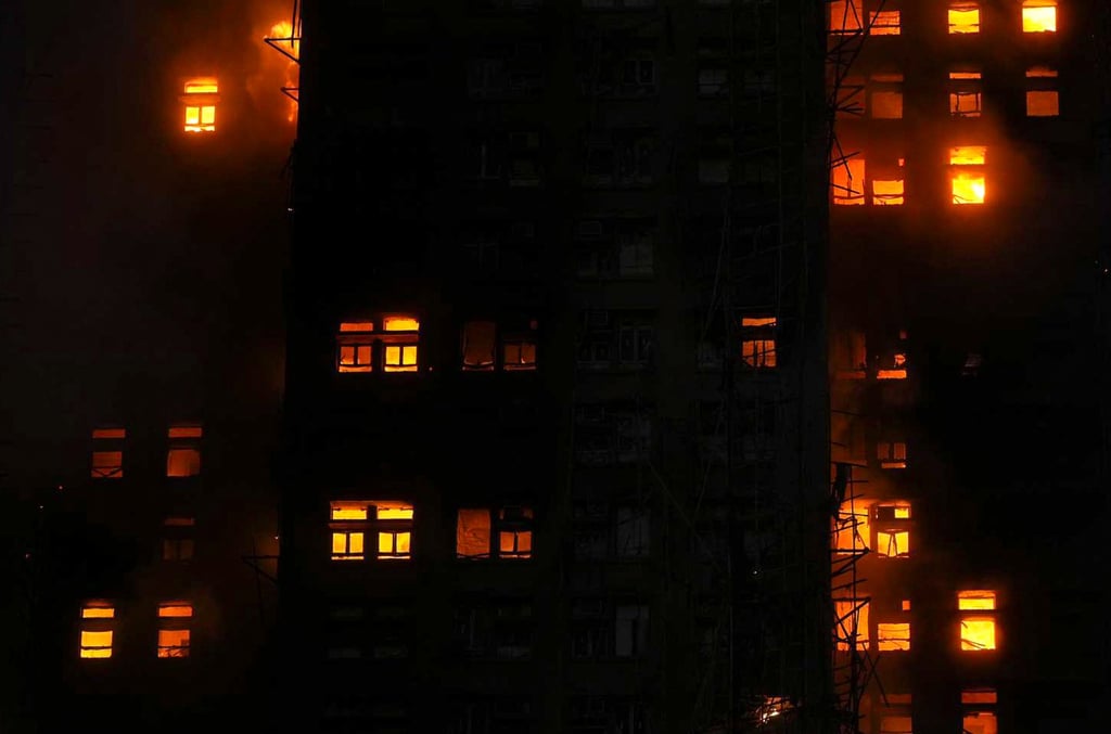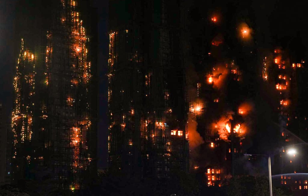 Scaffolding and flats in four blocks at Wang Fuk Court in Tai Po are ablaze. Photo: Eugene Lee