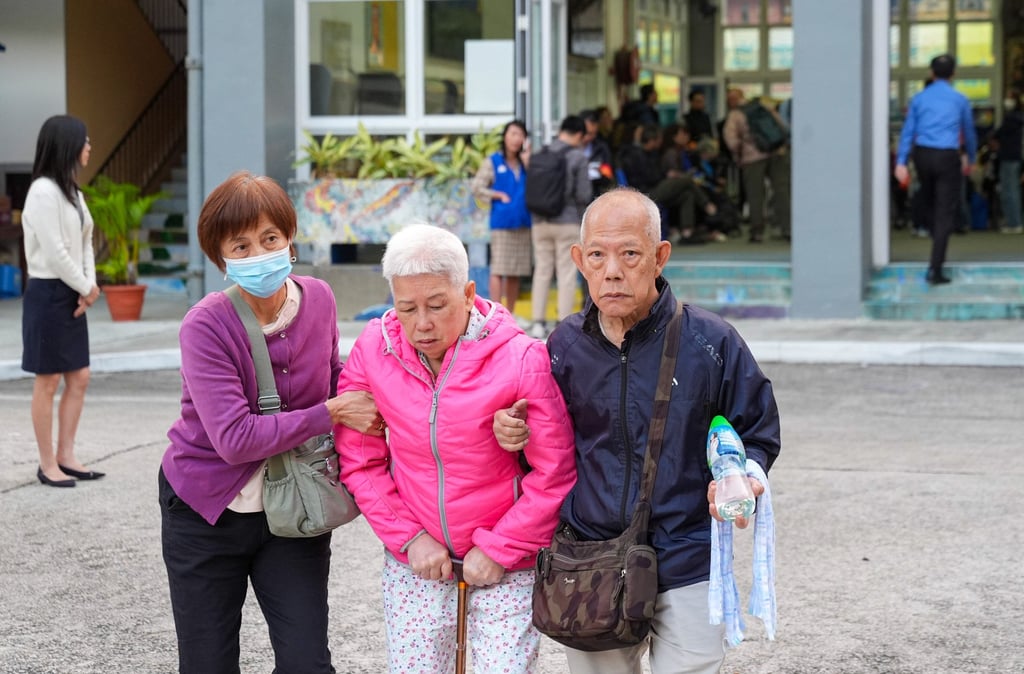Residents, including elderly people with walking sticks and those in wheelchairs, have headed to CCC Fung Leung Kit Memorial Secondary School, now serving as temporary shelter.